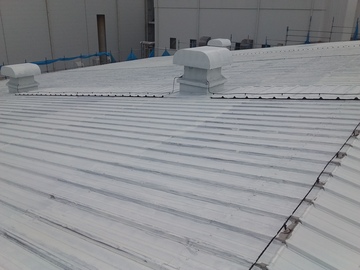 工場塗装!さくら市、倉庫屋根塗装中!折半屋根の塗装です!