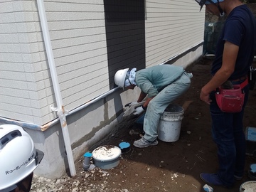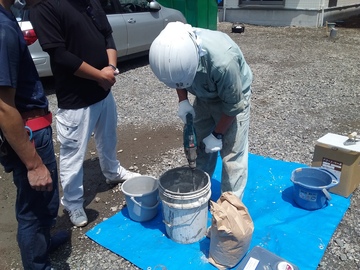 宇都宮市内で戸建て賃貸の基礎塗装、外壁塗装研修中