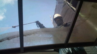 カーポートはおもしろいくらい綺麗になったので洗浄中の写真載せます!カーポートの下からとりました!上半分が洗浄してあって下半分が洗浄前です!