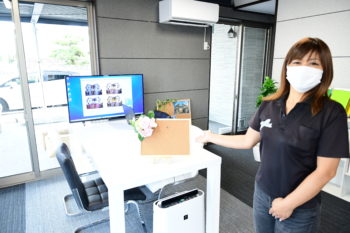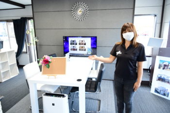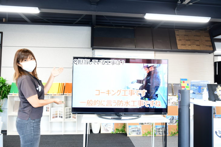 大画面で、お客様からのお喜びの声や、職人紹介をしてます♪
