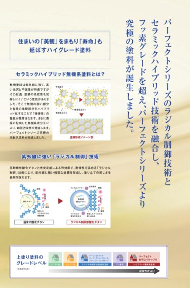 フッ素樹脂塗料を超える高耐候性を発揮。パーフェクトシリーズ史上最強の塗料。