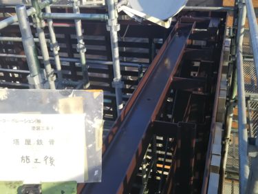 塔屋鉄骨ケレン作業