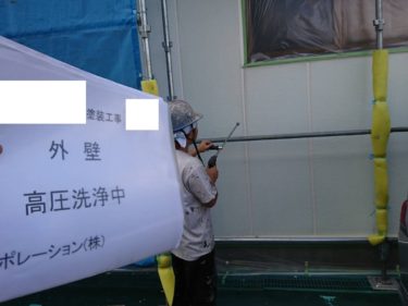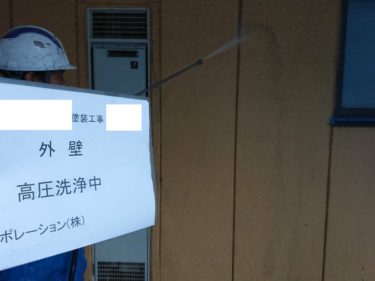 高圧洗浄で汚れえお落としてから、塗装工事を行います。