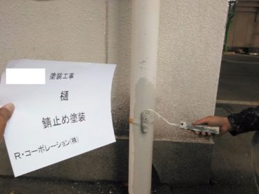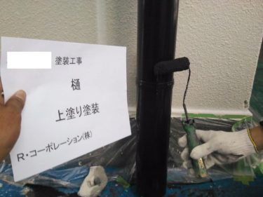 樋 錆止め塗装の様子です。
