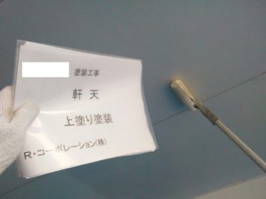 軒天 上塗りの様子です。