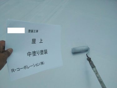 屋上 中塗りの様子です。この工程を行うことによって見た目が変わっていきます。