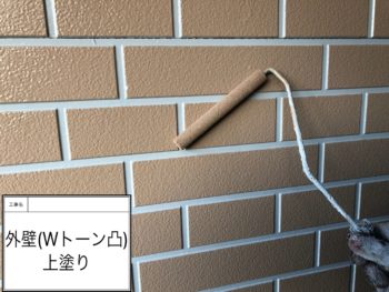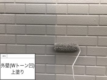 外壁はダブルトーンの2色で塗装をし、タイル調サイディングの意匠性をそのまま保って塗装しました