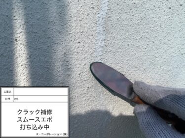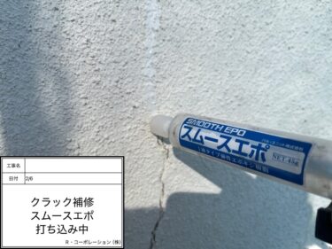 クラック補修 スムースエポ 打ち込み中