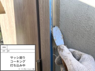 サッシ廻り コーキング 打ち込み中