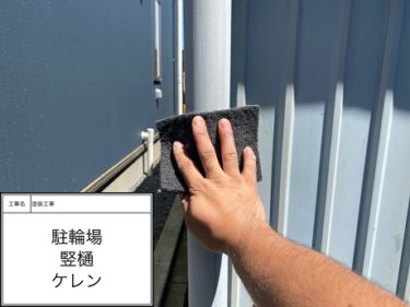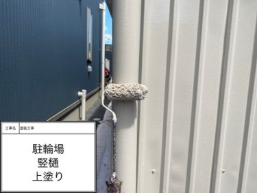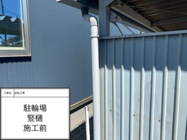 駐輪場 竪樋 上塗り