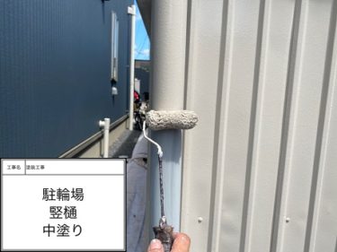駐輪場 竪樋 中塗り