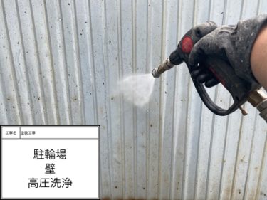 駐輪場 壁 高圧洗浄