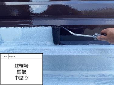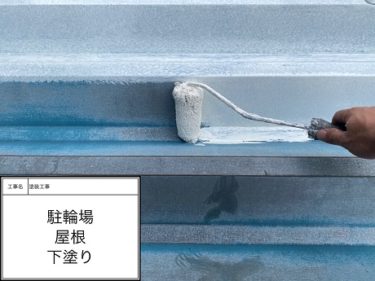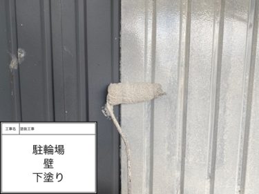 駐輪場 屋根 中塗り