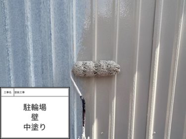 駐輪場 壁 上塗り