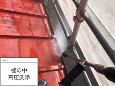 樋の中の高圧洗浄作業です。