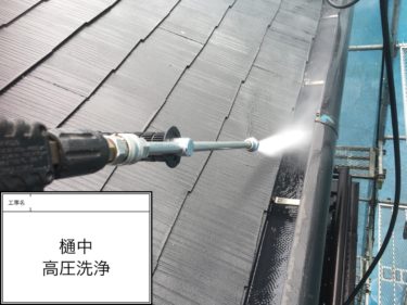 横樋も高圧洗浄で綺麗にしていきます。
