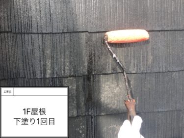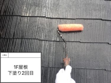 屋根塗装の下塗り1回目の様子です。