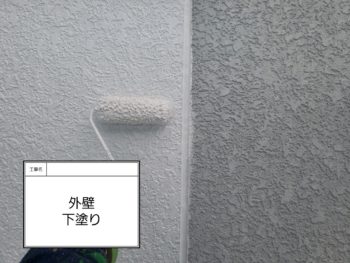 外壁下塗り作業です。(1階部分)