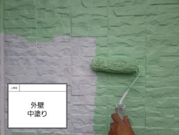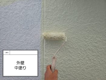 外壁中塗り作業です。(1階部分)