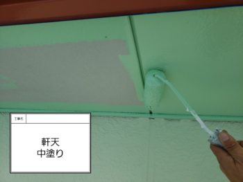 軒天中塗り作業です。