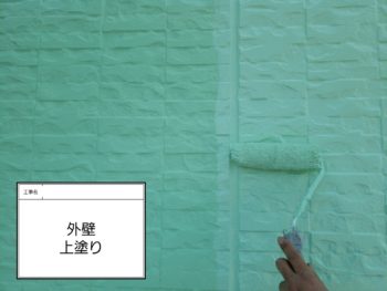 外壁上塗り作業です。(1階部分)