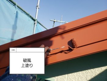 破風中塗り作業です。