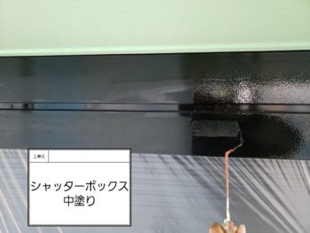 シャッターBOX上塗り作業です。