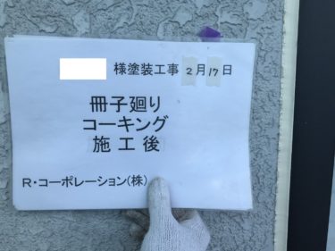 コーキング 冊子廻り部分施工後です。