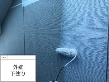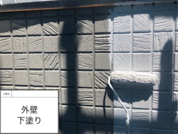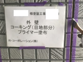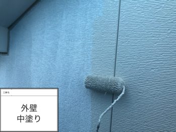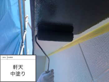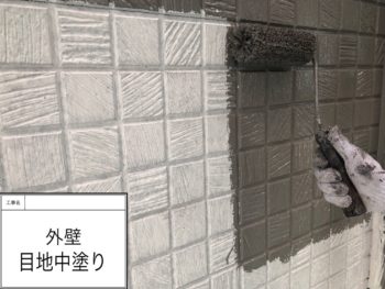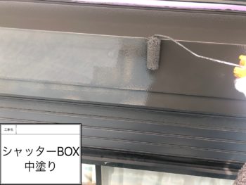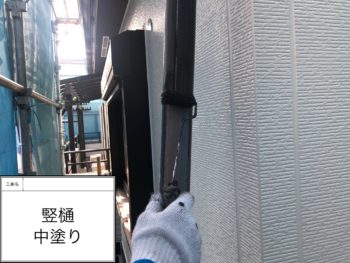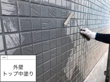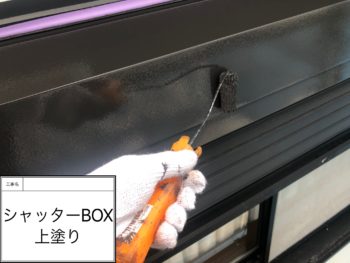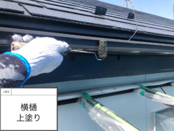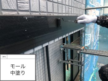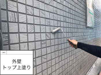 外壁(ダブルトーン部分)目地部分の上塗りの様子です。