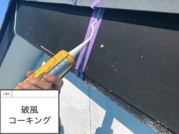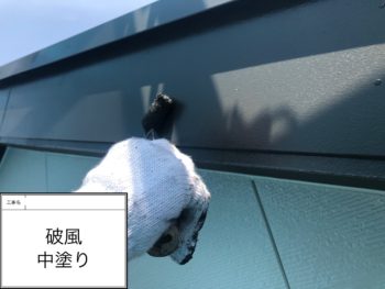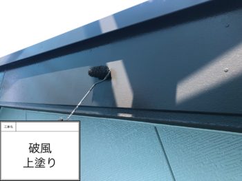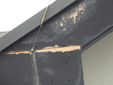 劣化により破風部分の塗膜が剥がれています。また、劣化により、色褪せしています。