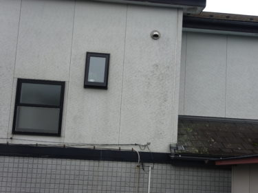 施工前の全景です。外壁部分にクラック(ヒビ割れ)が見られます。これ以上酷くなるとクラック部分から雨水が浸入してしまう恐れがあります。