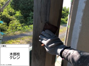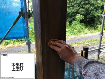 木部部分の色があせている所は、撥水効果が無い状態です。撥水効果が無い部分は雨水を吸ってしまう為、腐敗しやすい状態です。