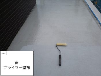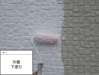 外壁目地部分のプライマー塗布の様子です。この後、コーキング剤で隙間を埋めます。