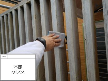 木部の上塗りの様子です。塗り重ねることでむらがなくなります。