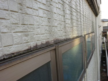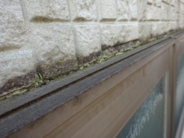 窓回り部分のコーキング部分に亀裂が、入っています。酷くなるとここから雨水が浸入する恐れがあります。