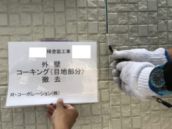 コーキングの亀裂がとてもひどい状態でしたので、コーキングの撤去打替えもご提案させて頂きました。 コーキング撤去打替えは特別な事ではなく、通常塗装工事の際には行う物です。 |