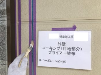 目地部分のプライマー塗布です。