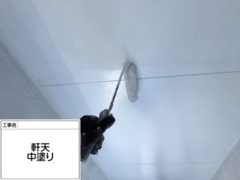 軒天の上塗りです。