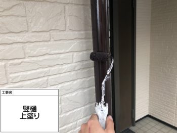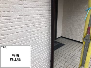 竪樋が劣化により、色褪せしています。