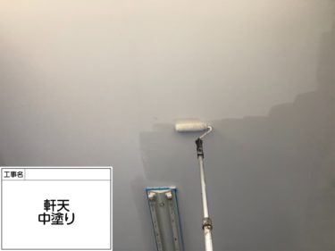 軒天 上塗りの様子です。