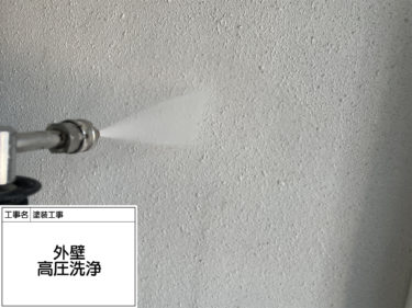 高圧洗浄で汚れを落としてから塗装工事を行っていきます。