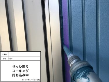サッシ廻り コーキング 打ち込み中