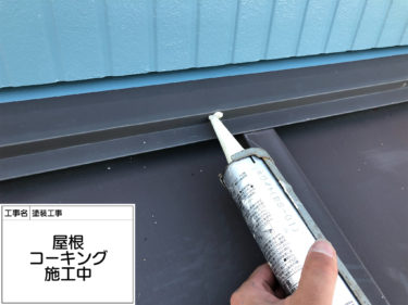 屋根 コーキング 施工中