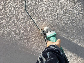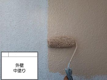 外壁上塗りの様子です。何度も塗り仕上げます。