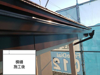 横樋施工完了後の様子です。綺麗な茶色に仕上がっています。