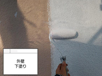 外壁下塗りの様子です。ベースになるところなので丁寧に塗っていきます。