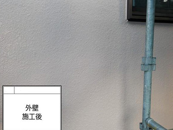 外壁補修が完了後の様子です。ヒビなどもなくなり新築のような壁になりました。