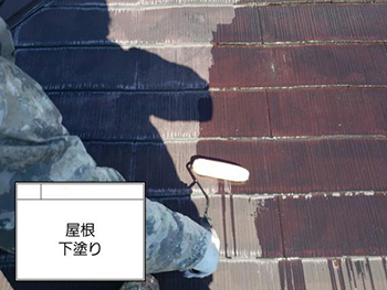 屋根下塗りの様子です。次に中塗りをする準備をしていきます。