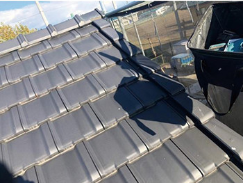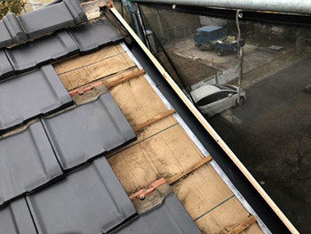 捨て谷、下地を取り付けて瓦を修復していきます。
