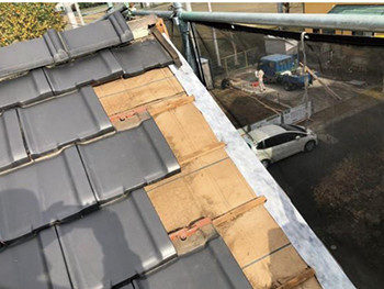 瓦の下地を撤去し、ルーフィングを取り付けます。